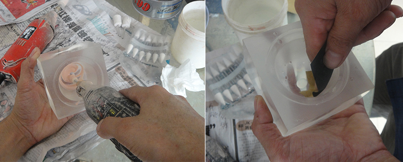 ดูดสารละลายที่เตรียมไว้เพื่อป้องกันรูในแผ่นพิมพ์แพด