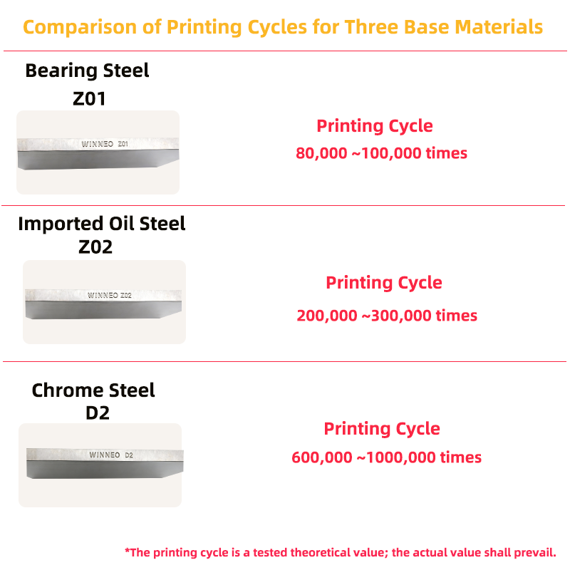 การใช้เหล็กคุณภาพสูงและการประมวลผลที่พิถีพิถัน ทำให้ได้ความเรียบและความเรียบสูง ช่วยให้ขูดได้อย่างสะอาดและหมึกไม่รั่วไหล ตอบสนองข้อกำหนดของการพิมพ์กราฟิกที่ละเอียด